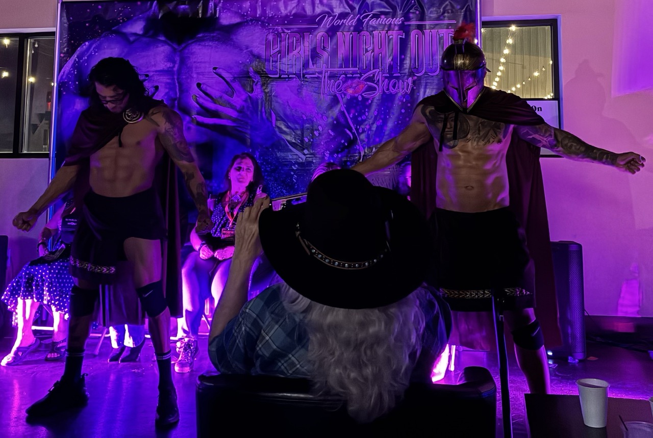 One woman, who had obviously been in a recent accident, rolled up, using a walker, with her left arm in a sling. She’d sprung for two hot seat dances. Both dancers impressively accommodated her condition. They were duly rewarded because she’d reach into that arm sling, and pull out money to shower them with.