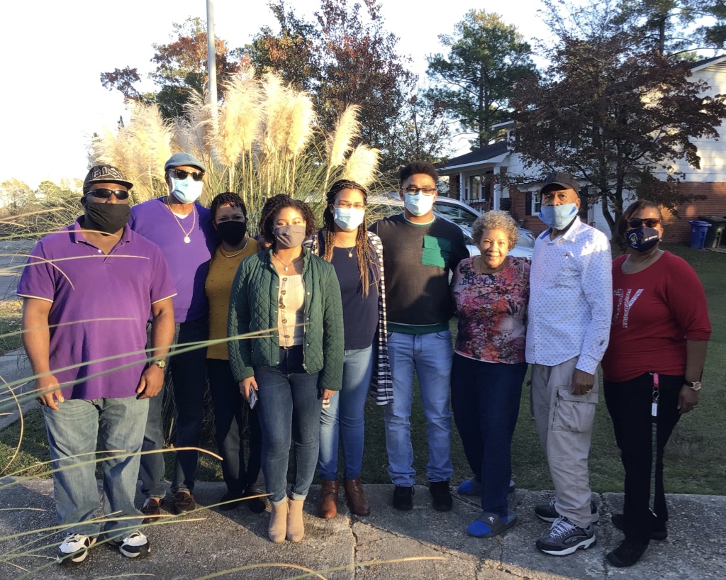 They traveled to NC from VA a week prior to Thanksgiving to visit Mom and Dad and to deliver Christmas gifts. Although this group picture doesn’t look too “socially distant,” they kept their masks on and stayed outside during their visit.