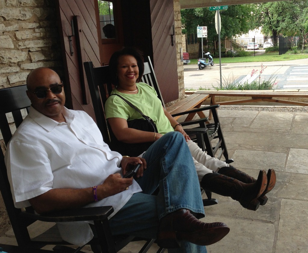 We spent a little too much time in the hat shop and was a bit late for our lunch date with another cousin who’d driven to Austin from Atlanta to spend the week with her boyfriend. Another thing that delayed us was a sudden downpour, which everyone blamed on the recent tornadoes for stirring things up. Along with those two things, I parked in the first available spot that was about 6 blocks away or a mile and a half if one listened to my brother-in-law.