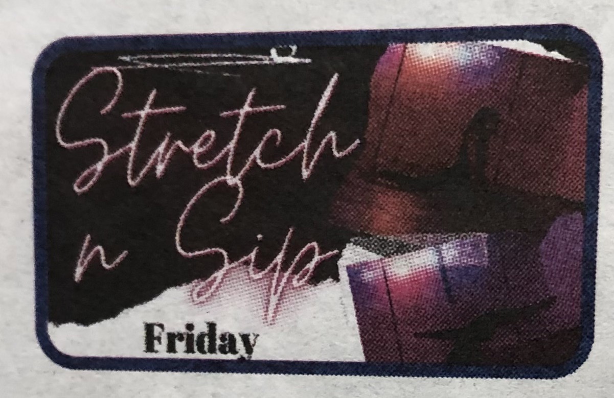 As I turned to see if anyone in the booth behind us was reacting to a straw projectile, I spied the straw in the seat between my friend and me. I’d like to credit/dedicate the foolishness of that moment to the spirit of the stretch and sip.