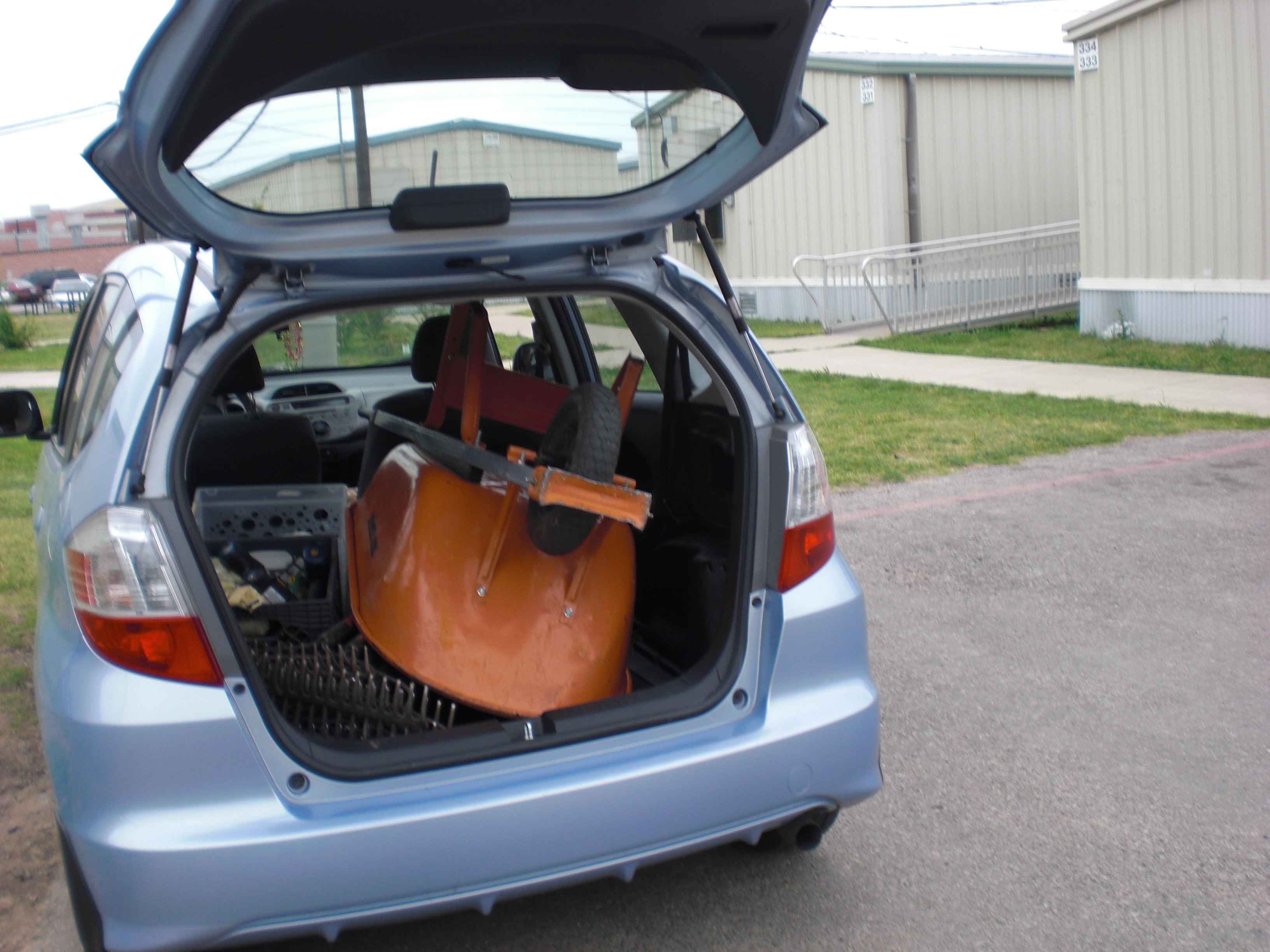 I attended three classes sponsored by The Sustainable Food Center, which subsequently awarded Akins High School with $200 toward the implementation and maintenance of our two square gardens. Then Home Depot gave us $75 worth of gift certificates, which helped pay for the lumber, soil and mulch…the added bonus was that one of the Home Depot managers delivered the materials to our school since my Honda Fit couldn’t possibly fit all that plus the tools that Keep Austin Beautiful lent us: 10 rakes, 20 pairs of work gloves, 10 hand cultivators and a wheel barrow! ( Yes, I actually put a wheel barrow in my tiny car and I have the picture to prove it!) The Natural Gardener also gave us $100 in gift certificates, which we used to buy a selection of vegetables, herbs and organic fertilizer.