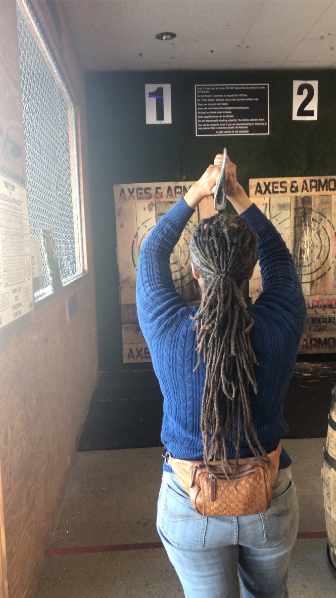 One thing I knew for sure, I wasn’t leaving until I’d hit the bullseye. Or until he tapped me on the shoulder, telling me that my time was up. I never quite figured out how to aim, but I felt when the axe flew out of my hands incorrectly.