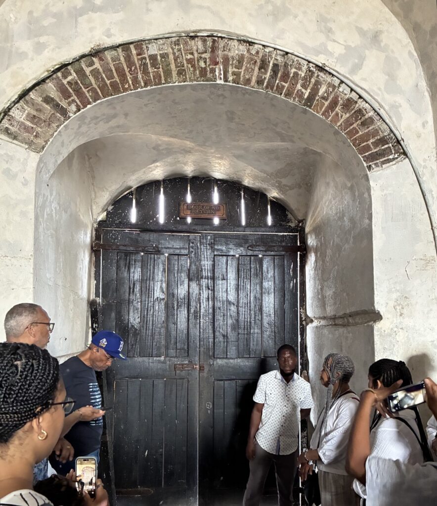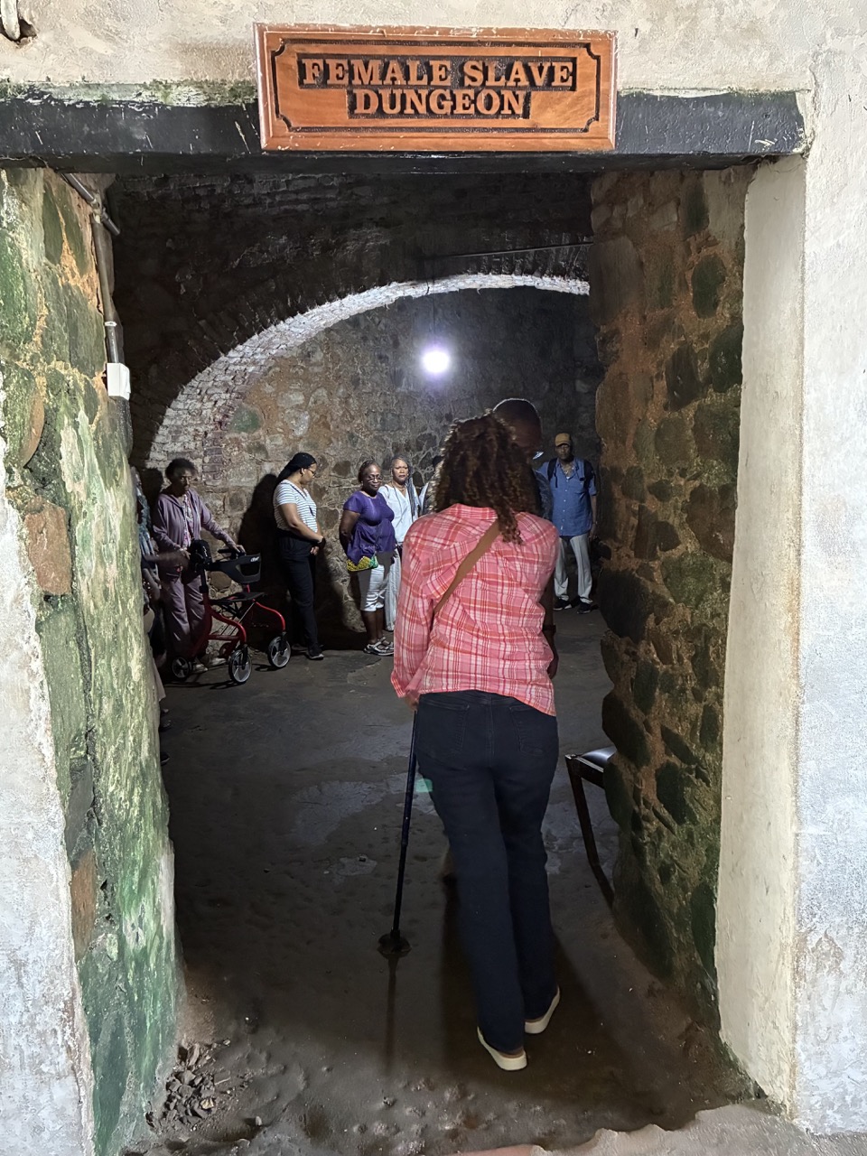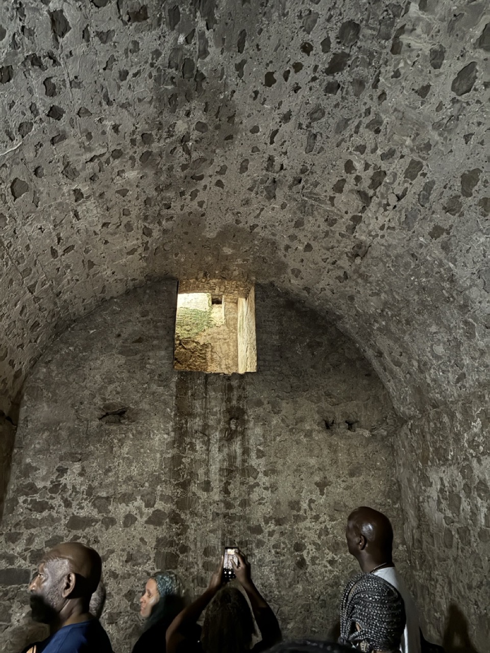 I silently prayed while entering the male slave dungeon, which consisted of a few rooms. Each small chamber had held 100-200 people with only three small holes at the top of the high walls to allow cool, fresh air. The windows were far too high to see out of or escape through. Enslaved Africans spent one to three months in a dungeon.