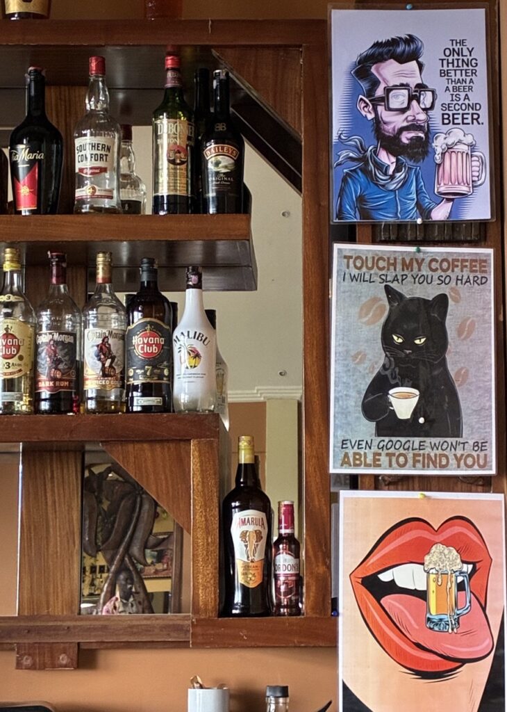 After filling out a registration form, we were escorted to dinner since no golf cart arrived to take us to our room, which was located across the sprawling hilly grounds. Dinner consisted of the usual local food, enhanced by treating myself to a shot of Bailey’s. Much after the fact, servers brought out a salad, which had to be replenished before I got any.