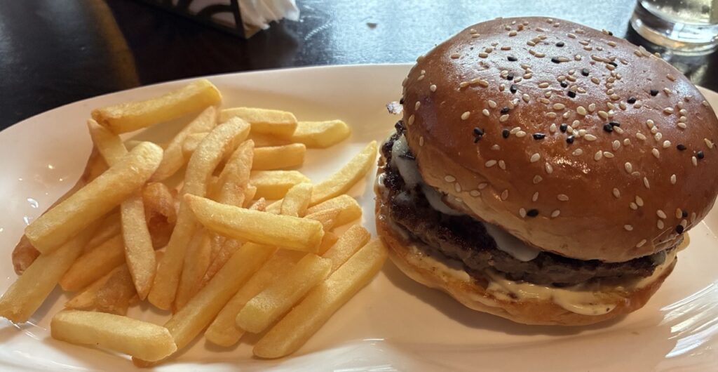 Before shopping for chocolate, we first ate at a restaurant that was on par with Hard Rock Cafe with a lot of pictures of famous musicians. After eating a lot of local Ghanaian food, I broke down at this place and ordered a burger and fries. Contrary to popular belief, not all Americans love ketchup. I asked the server for hot sauce before the food even hit the table. Besides, it’s never a good idea to go grocery shopping hungry. We treated our support staff member to his meal of a very spicy medium-sized pizza.