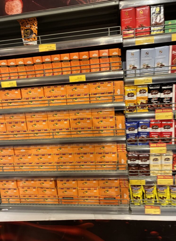 Properly sated, we entered the grocery store that was a combination of Whole Foods and the Sears appliance section. I steered my two cousins past the appliances. No browsing for irrelevant things. This shopping trip was dedicated to three things: wine, chocolate and other wine snacks. We hit the motherlode all the way in the back, the direct opposite of where we’d entered.