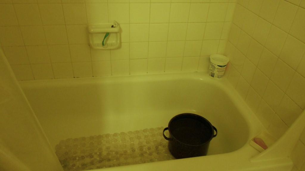 Sunday morning, after my 10 am bikram yoga class, I just had it in my mind that hot water or not, I was going to turn on the faucet and shower. Even if I had to run in place for 5 minutes to make the icy cold water feel refreshing, I was in no mood to warm up a pot of water, carry it to the bathtub, stoop over and go through the whole bucket-bathing ritual.