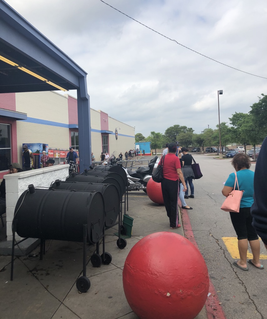 Once I finally got to the entrance, an employee directed me to receive a basket and a wet wipe from another employee. I looked her directly in the eyes and said with a smile on my face, “You’re doing such good job.” She was taken aback at the compliment. I also made direct eye contact and smiled while I said, “Thank you,” to the guy who handed out the wet wipes and baskets. After all, I had a customer service job that I did from home. I knew the stress of working with the general public. At least I could hang up on the assholes.