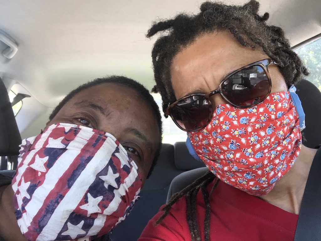 Once in place, I didn’t feel smothered by the mask at all. Plus the first time I tried it out, the weather was cooler. We picked up the masks prior to shopping for groceries. Rumor had it that grocery stores would start requiring us to wear masks and adhere to one-way aisles. There weren’t any one-way aisles when we later went shopping, but we could only enter through one door and exit through another. Every basket had their handle cleaned by an employee and hand sanitizer was readily available once we entered with our basket.