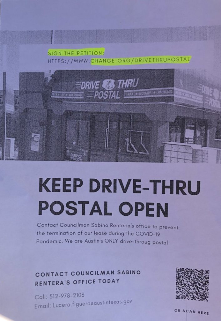 But what concerned me even more was the threat of this wonderful mom and pop postal service closing permanently. This wasn’t due to the pandemic nor the lack of business, but rather their lease being under threat of termination.