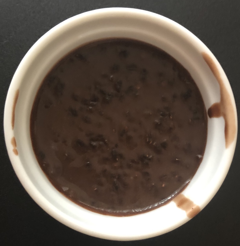 The strong bourbon taste overpowered the chocolaty goodness. Perhaps I hadn’t waited long enough for it to set. Or too much alcohol was used. The texture wasn’t pudding-like. And then there were coconut flakes. I normally love coconut, even with dark chocolate, but with all other things being “off,” the coconut flakes seemed like an out-of-place texture.