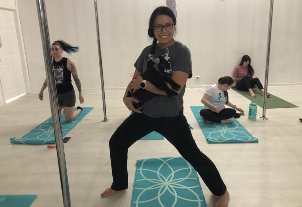 At one point, their human put them on our backs while we were in child’s pose. They skedaddled almost too soon before a picture could be taken.