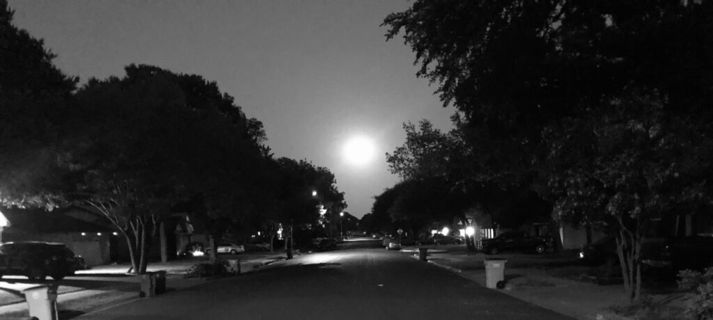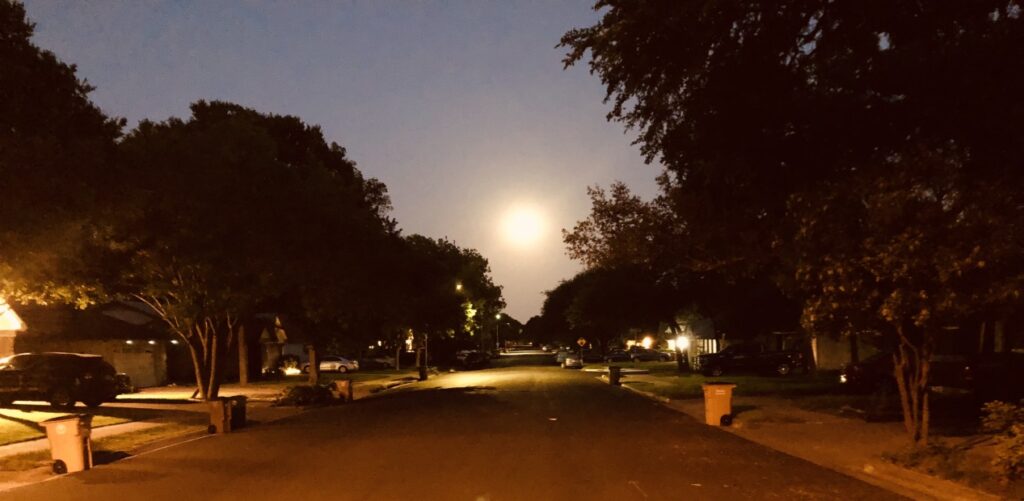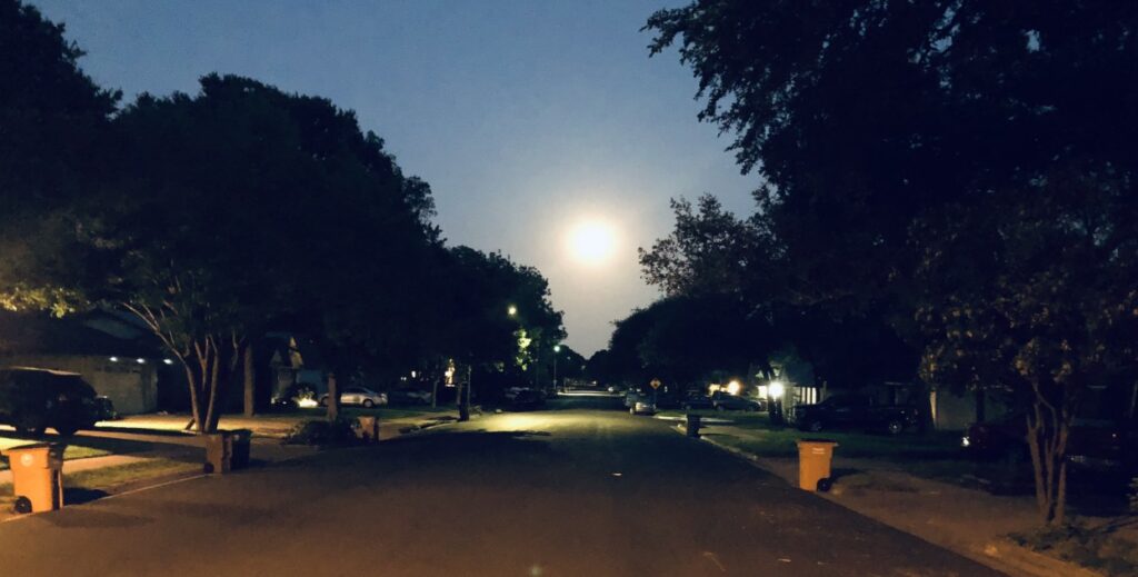Thanks to the Saharan dust, the moon appeared hazy, but everything else about the evening was divine. The temperature dropped to a very comfortable latent heat, the humidity wasn’t oppressive and since I’d lathered myself in Skin So Soft, the mosquitoes were held at bay.