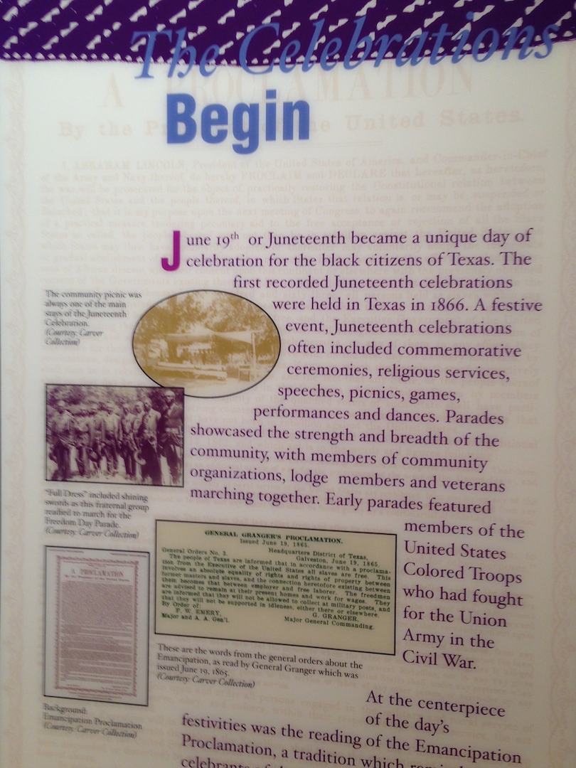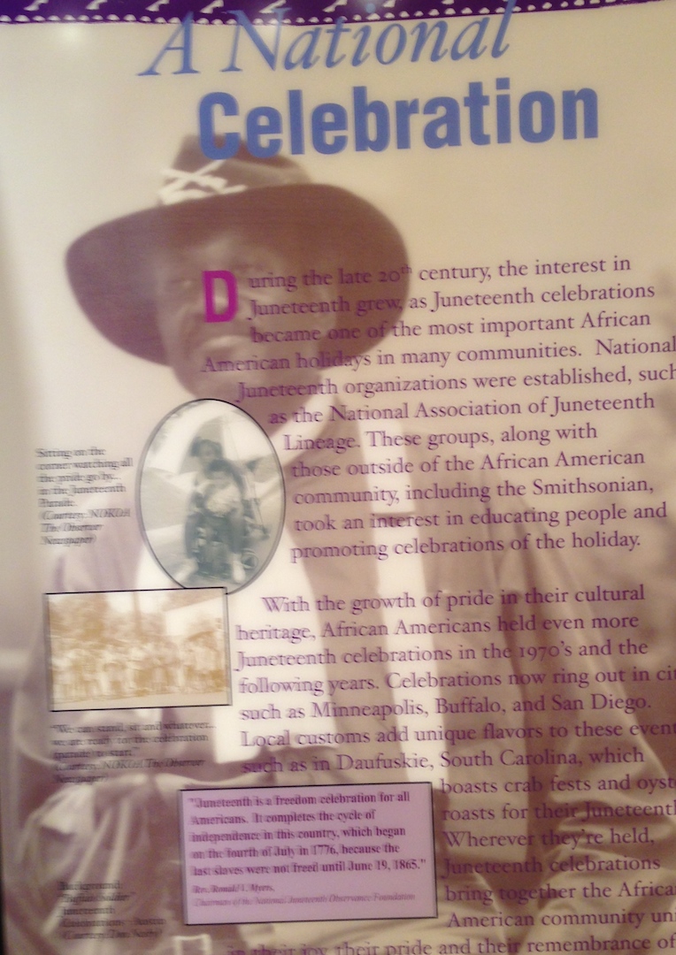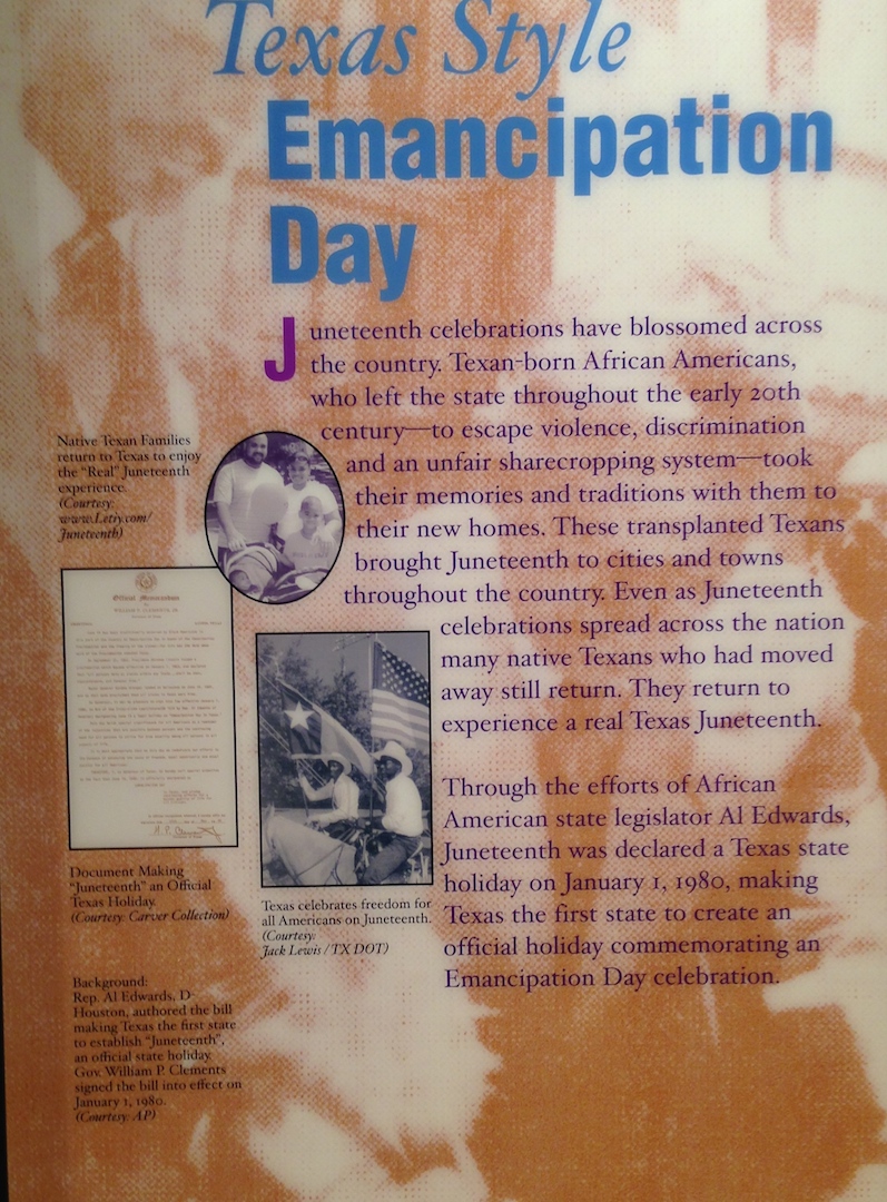 At the end of our interpretation time, we took a group picture, and dashed away. The other woman and I were more than happy to change into our regular, cooler clothes, then eat a delicious barbecue lunch provided for volunteers. While eating, I caught up with one of the movers and shakers in Austin, who actively works to keep the historical black areas renovated and well-known. And, for the second time this week, I got an offer to teach a creative-writing course, this time with an emphasis on genealogy narrative.