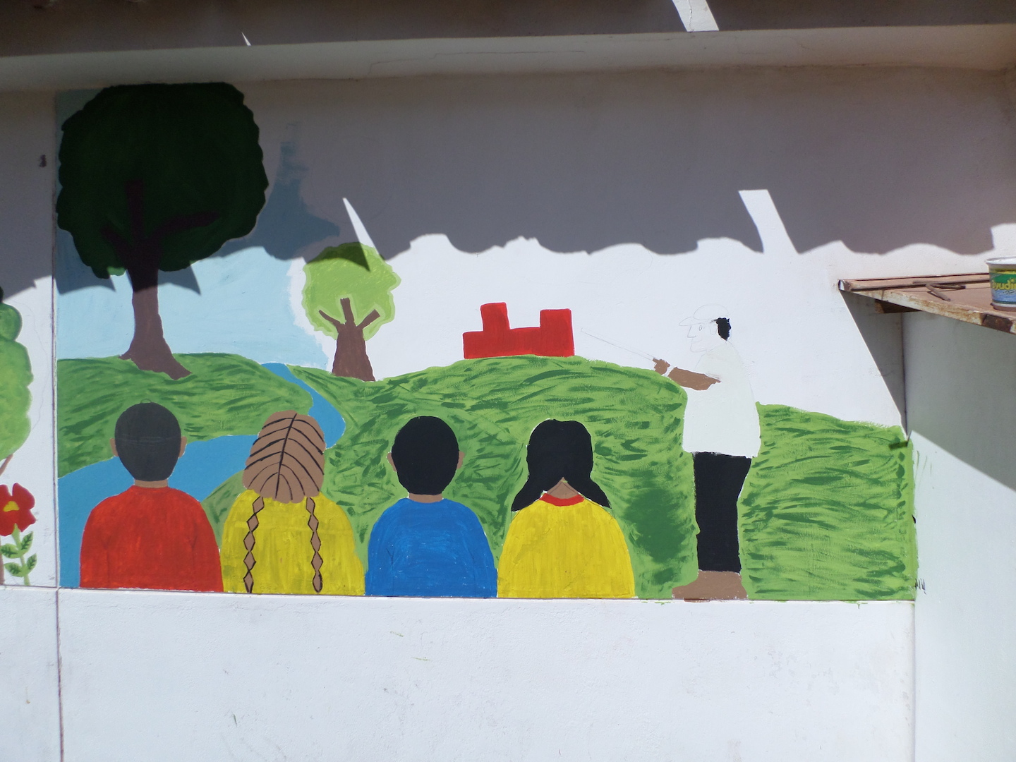 Most of us chose to paint the mural, which had been sketched out in pencil. The theme appeared to be an ecological message about how everyone was responsible for maintaining the well-being of the environment.