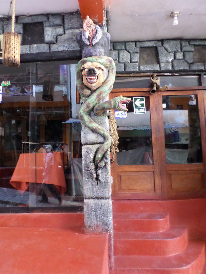 On the way back to the hotel, I stopped into this liquor store for a 2.5L bottle of water. I could not resist taking a picture of the Peruvian fertility god sitting among the alcohol.