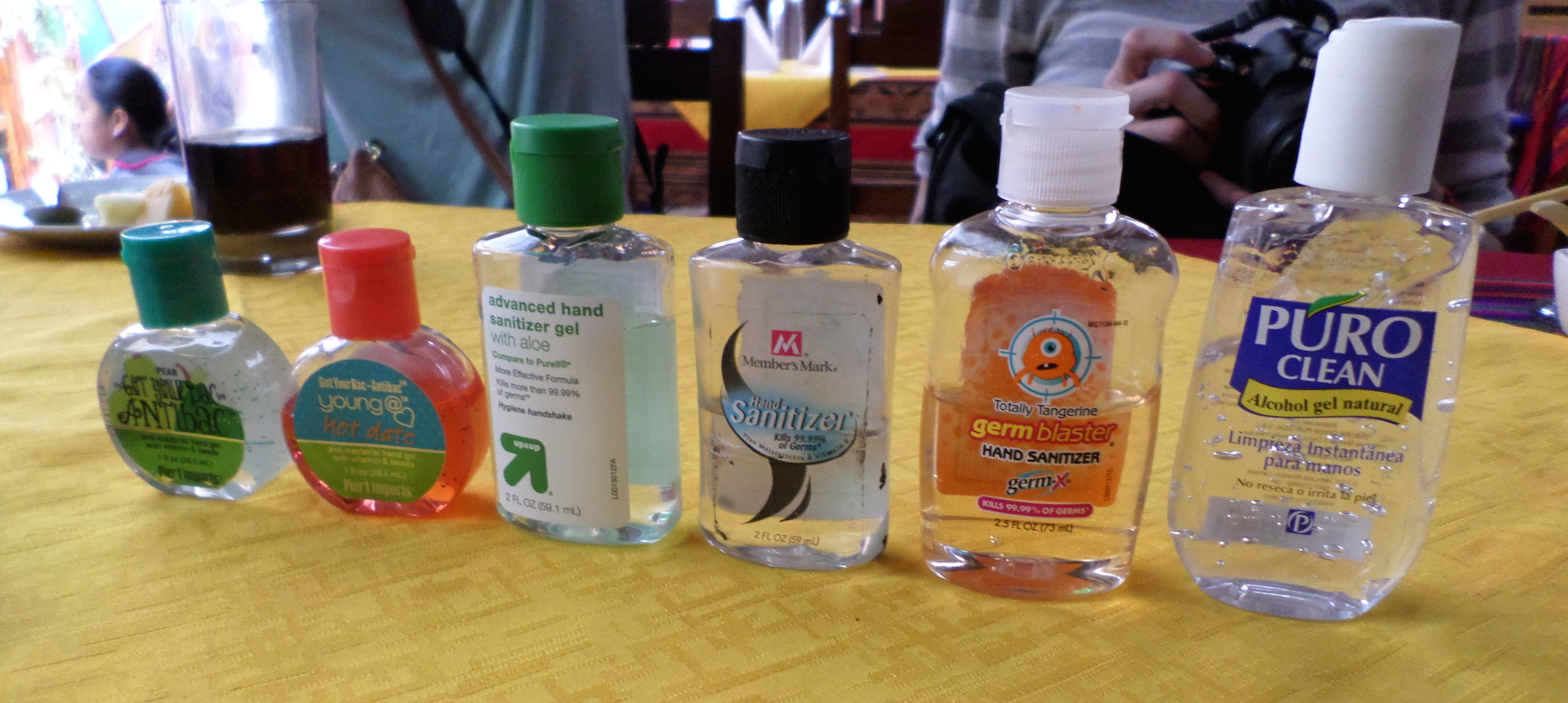 This is one thing that happens when six women travel together: time to break out with the hand sanitizer before eating!