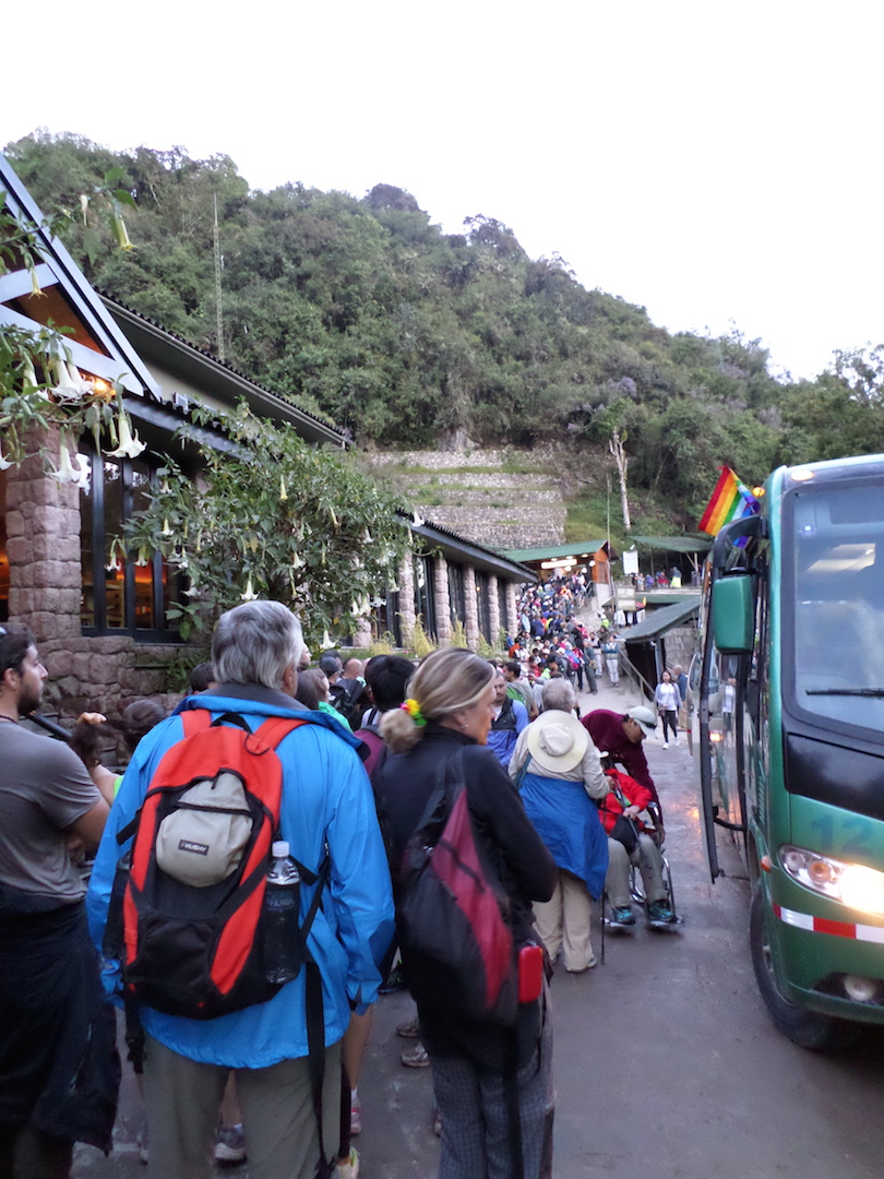 For the second early morning in a row, we stood in line for a Machu Picchu shuttle. Some tourists speculated about the safety of the infamous shuttles. I shared the same sentiments as one cotraveller: “I’ve walked too much this week to roll off a bus!”