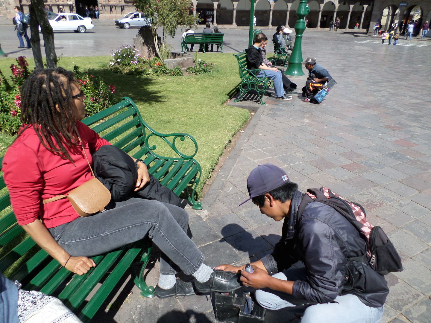 At the Cuzco airport, security and a group of passengers huddled around a flatscreen TV. I didn’t have to remove my newly shined shoes nor throw away my opened bottle of water because of a tight game between Costa Rica and Greece. The crowd roared when Costa Rica won. Then magically, the airport announcements resumed.