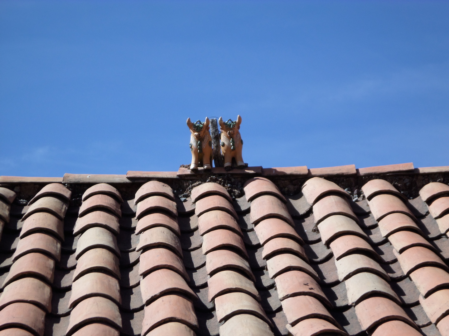 On a rooftop of one of the houses were bulls, which symbolized Catholicism.