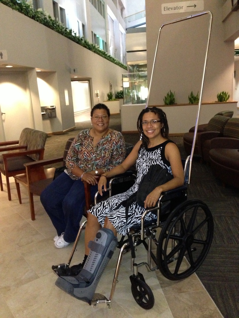 The time had finally arrived to repair my fractured fibula. I’d already become quite good at maneuvering my crutches around my apartment, up the apartment stairs and rolling around my classroom in a wheeled chair–not an actual wheelchair. I’d furiously planned and written two weeks of lesson plans for my science classes and had picked up my sister from the airport.