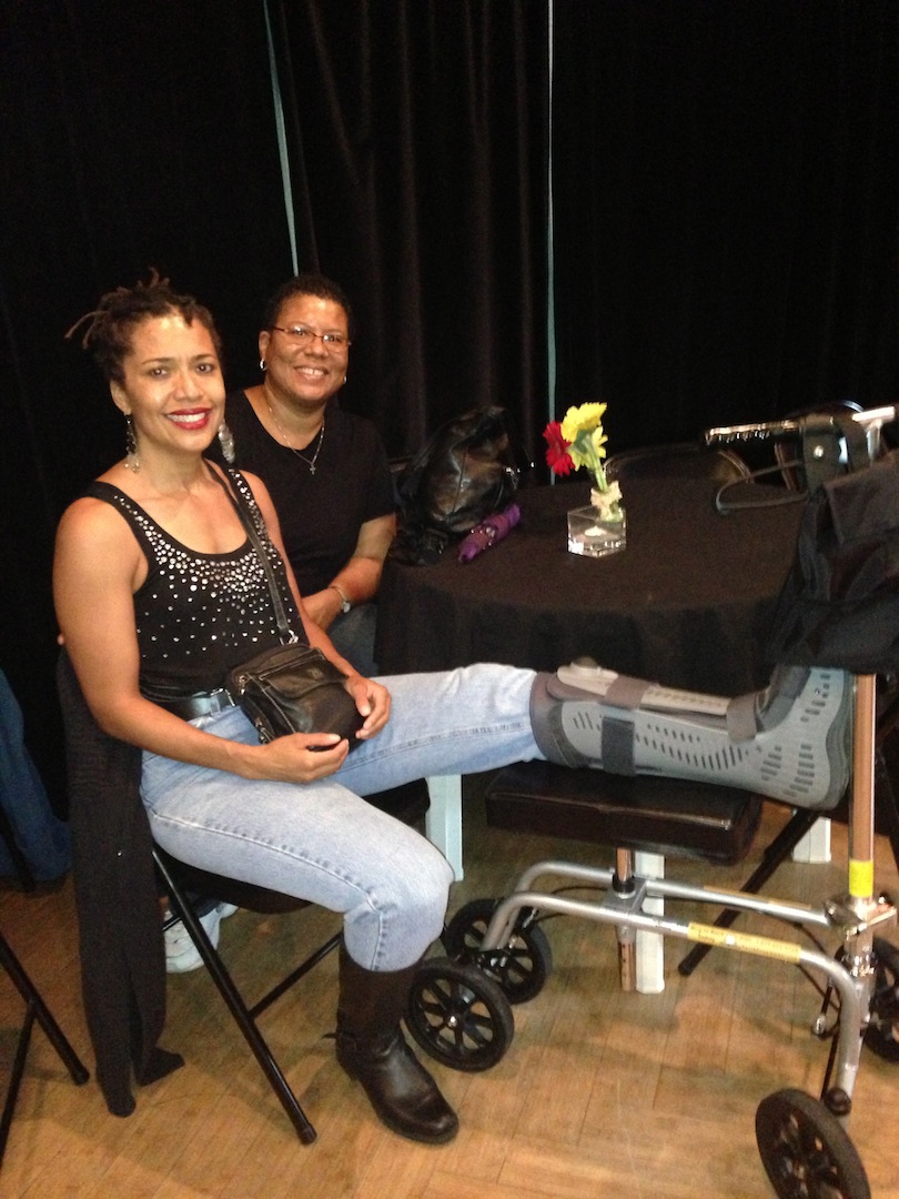 On Saturday, I was determined to go out on my 43rd birthday, crutches and all. What a terrifying, but rewarding experience to hobble down 16 stairs one stair at a time, double-crutched on the left side to support my left foot. Then onto my car to attend Brazilian night. Despite the fact that I was dressed up in capoeira performance attire, the woman at the door questioned if I was one of the performers. Then informed me that I should have used the performers’ entrance in the back. The younger woman at the desk just chuckled as she took in my crutches and said, “Well she’s in now.” Then the younger woman asked for my ID. At that point, I saw one of my tango partners, who’d arrived much earlier than I, and asked him to vouch for both my age and the fact that I’m a capoeirista. Beyond that, he was my big hero who got two chairs for both me and my fractured fibula. I even invited him to get a third chair for him to sit beside me.