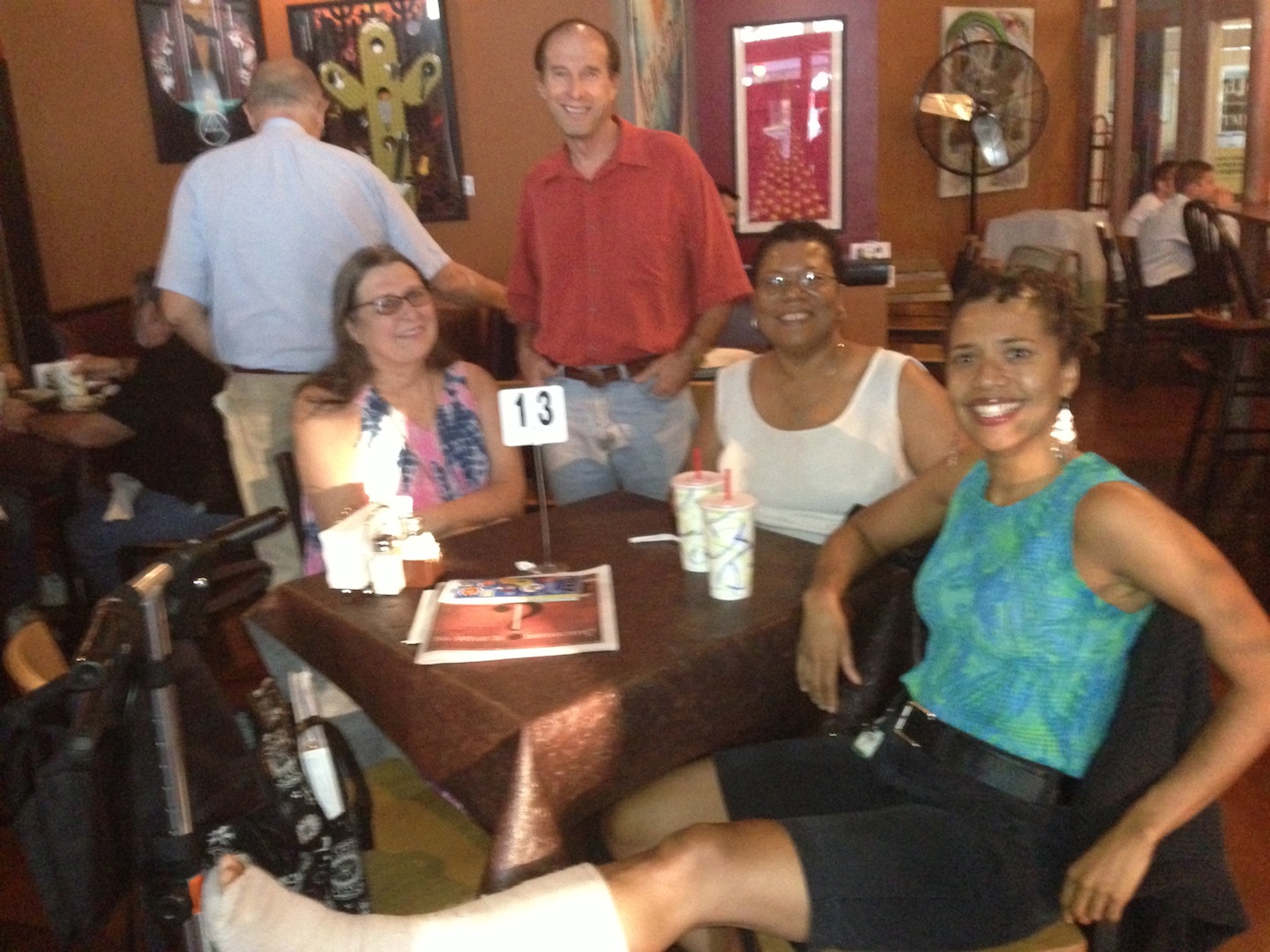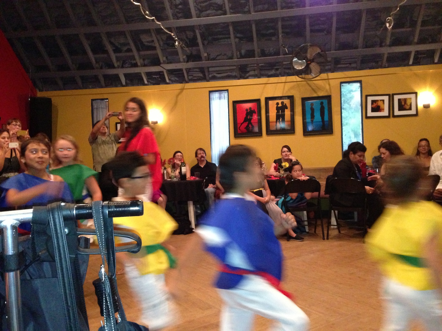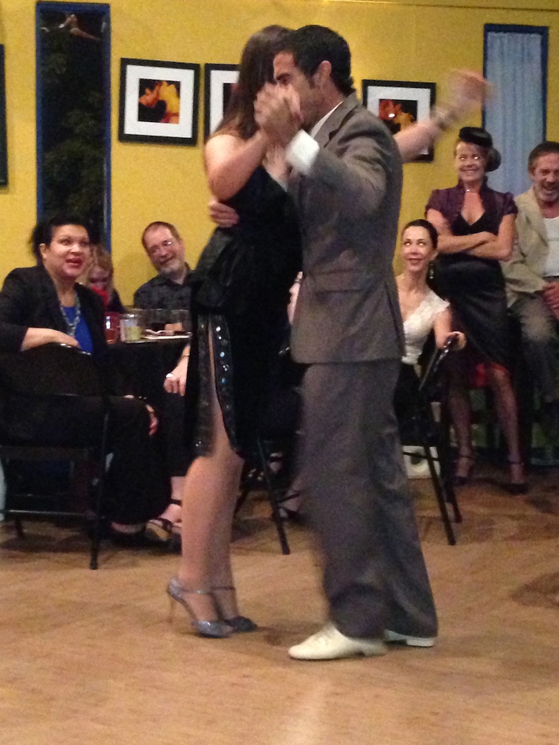 The next night, we attended a fundraiser where I’ve taken tango, Spanish, and samba lessons. We got there early enough to get a choice table to prop up my leg.